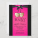Convites Damasco preto e rosa legante| Chá de fraldas