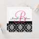 Convites Damasco Rosa Quente com Nomes de Monograma de Conv