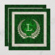 Pearl laurel wreath com moldura de pérolas em um fundo verde rico de damasco.