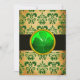 Elegante, sofisticado, legal, design único para o Dia de São Patrício com pedra de gema vibrante e flores de damasco verde em pergaminho envelhecido. Fácil de personalizar com suas iniciais e texto próprio como anúncio de festa do Dia de São Patrício ( St. Patty) , cerimônia de casamento, cartões de lugar, save-the-date, cartões de agradecimento, chás de noiva, aniversários, festas, chás de noivado, ou qualquer outro evento que você desejar! Modelagem e renderização muito precisas em nurbs por Bulgan Lumini (c). Parte da série Hyper Talismans.