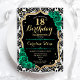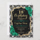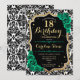 18º Convite de aniversário. Elegante design verde-esmeralda floral com ouro e rosas brilhantes falsos. Apresenta cor damasco preta e branca e fonte de script. Perfeito para uma comemoração de dia das mulheres na moda. Pode ser personalizado para qualquer idade! Impressos convites Zazzle ou modelo de impressão digital instantânea para download.