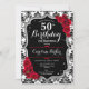 Convites Damask Black White Silver Red Foto 50th Birthday