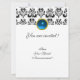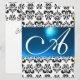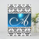 Convites DAMASK GEM MONOGRAM azul branco
