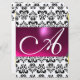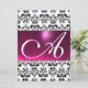 Convites DAMASK GEM MONOGRAM roxo rosa preto branco prata