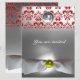 Convites DAMASK GEM STONE MONOGRAM fita branca cinza vermel