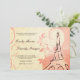 Roda-se e enrola-se sobre uma Torre Eiffel marrom, desenhada à mão, com chocolate, contra o pinto-claro-floral e o damasco-creme. Um poema de amor francês está tipicamente inscrito no fundo do creme, fornecendo o acompanhamento perfeito da personalizável formulação de convite para o casamento em letras de escrita e estilos de gravação, também em castanho de chocolate.