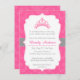 Celebre com mamães para ser, a chegada da menina, seu orgulho e alegria, com este convite de chá de uma menina elegante, clássica e chique princesa. A tiara vem com formas de coração e pequenos pedaços de joia e um interessante fundo de cor damasco rosa-quente. Um convite para realeza.