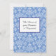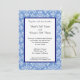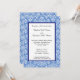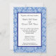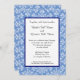 Convites editáveis de casamento com uma cor damasco floral vintage em branco em azul de córnflor, e cartas de roteiro em preto e cinza em um quadro azul. Personalize-o para alterar fontes, cores, adicionar ou remover texto, mudar planos de fundo, carregar uma imagem e até salvar seu design para mais tarde.