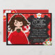 Tem uma senhora em casa que adora insetos? Ou celebrar a chegada de uma nova senhora com um chá de fraldas? Este adorável convite da Ladybug Cutie é muito doce para não comprar. Tem uma garota morena vestida de princesa de joaninha. O fundo tem uma bolinhas externa roxa e vermelha e branca. As flores e os sotaques de joias adicionam um doce toque a este convite.