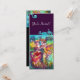 Convite de arte fina colorido, elegante e vibrante. Dançarinos românticos do carnaval: Figuras de dança artísticas, caprichosas e expressivas, bela mulher loira em trajes cintilantes e emplumados está dançando com um jovem Arlequim com enfeites azuis no verso do cartão. Pintura em aquarela em cores rosa brilhante, fúcsia, verde, vermelho, azul, amarelo, faíscas douradas inspiradas na Comédia de Arte (Commedia dell'arte) e no Carnaval de Veneza. É também um belo design para anúncios de casamento, programas, save the date, aniversário, reuniões, noivados românticos, chá de noiva, ocasiões especiais, festa de feriado, baile de máscaras de Mardi Gras, festas de aniversário. Sweet 16, bailes de debutante