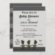 Convite para chá de fraldas num padrão colorido de tons de cinza. Vintage preto e branco. Dançarinos tribais na parte inferior da frente, simbolizam a dança da fertilidade. Vamos tribal com este design abstrato de tendência na frente e atrás desta placa plana. Substitua as informações por suas. Toda a personalização está disponível para a parte frontal e traseira da placa.