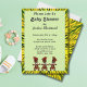 Convite para chás de fraldas. Abstrato em tons amarelos a verdes. Dançarinos tribais na parte inferior da frente. Design todos os zigzags para o centro. Vamos tribal com este design abstrato de tendência na frente e atrás desta placa plana. Substitua as informações por suas. Toda a personalização está disponível para a parte frontal e traseira da placa.