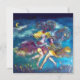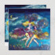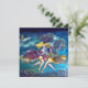 Pintura abstrata figurativa colorida, caprichosa e musical em vidro com figuras expressivas de dança romântica, bobo da corte, violinista, tocadores de flauta, fantasias vibrantes de carnaval, máscaras emplumadas sob a luz da lua com cores rosa brilhante, fúcsia, verde, vermelho, azul e amarelo, inspirada na Comédia dell'arte, máscaras italianas e Carnaval de Veneza. Você pode personalizar facilmente para ocasiões especiais, casamentos, festas a fantasia, festas de aniversário, festa de Natal, aniversários de casamento, baile de máscaras de Ano Novo, Dia dos Namorados, save the date, noivados românticos e qualquer evento que você desejar!