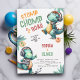 Um convite de festas de aniversário divertido e fofo para dois, com um tema de dinossauro e o título Stomp Chomp & Roar, com ilustração aquática de dois adoráveis dinossauros vestindo headsets, ouvindo música e dançando. Celebre seus pequenos selvagens com este convite engraçado e arrogante que vai dar o tom para um tempo selvagem.