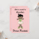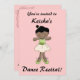 Vocês podem se divertir com este convite para Dança Considerando, apresentando uma bela bailarina com uma pele escura vestida em seu tutu, e atrás um par de calçados de balé, e uma fita rosa na esquina. O texto é completamente personalizável, basta preencher seus detalhes. O fundo que fiz era rosa pálido...mas isso também pode ser alterado, basta clicar em "personalizar" e "editar" e clicar na caixa de cores e mudá-la para o que quiser.