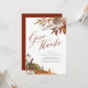 Moderna tenda castanho escuro, beges neutros e terracota laranja queimada no outono caem folhas botânicas florais e guião de caligrafia rustica elegante de abóboras, convite Jantado para Ação de Graças.