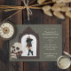 Celebre seu formando com este convite para festas de formatura temático da academia escura. Este convite de tela plana está pronto para ser personalizado com sua própria foto e todos os detalhes de sua festa. Apresenta uma ilustração de um crânio, uma vela num castiçal, alguns livros antigos e um quadro de ornamentado contra um fundo verde-cinza escuro.