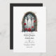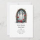 Convite de casamento gótico com janelas de castelo personalizáveis para suas especificações de evento. O código QR no verso direciona para o seu local de casamento onde o pessoas pode aprender mais e rsvp.
