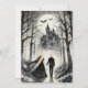 Dark Gothic Forest Wedding Couple Haunted Castle Invitation Card Design.