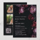 This elegant dark moody floral wedding invitation features purple and red peony flowers on a black background. Dark romantic aesthetic wedding invitation. With a scannable qr code and 3 photos on the backside.