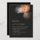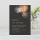 This dark moody wedding invitation features photo realistic 3D blush apricot roses on a black background. First names only text template