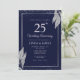 Dark Navy Blue Silver Leaf Wedding Anniversary Invitation