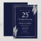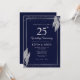 Convites Dark Navy Blue Silver Leaf Wedding Anniversary