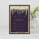 Convites Dark purple gold luxury glitter drips RSVP