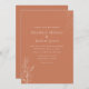 This dark terracotta wedding invitation features delicate ivory botanical line art and refined modern typography. The warm clay background creates a rich, earthy aesthetic perfect for boho, rustic-chic, modern, or desert-inspired weddings. Designed to coordinate with the entire terracotta monochrome collection, this invitation can be fully personalized with your names, wedding details, and wording for a beautifully cohesive stationery suite.