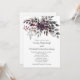 The florals are delicately layered, with silvery undertones that add a subtle shimmer against the deep backdrop. The overall design is vertically balanced and clean, allowing the botanical elements to frame the content without overwhelming it. It evokes a timeless charm—perfect for a celebration steeped in warmth and style. There's also a version on a burgundy background.