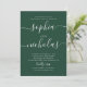 This engagement party invitation features a deep woodland green background paired with flowing script names and clean, minimal text. The layout keeps everything easy to read while still feeling personal, with the script adding character without overwhelming the design. The contrast between handwritten style names and simple typography creates a balanced, modern look. Works well for engagement parties and other pre-wedding gatherings, especially for events with a slightly more formal or evening atmosphere. Pairs naturally with modern elegant, classic, minimalist, and woodland inspired wedding styles, as well as celebrations with darker or richer color palettes. A good choice if you want something clean, slightly refined, and not overly decorative, while still feeling intentional and styled. Available as printed cards or digital download.