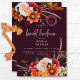 Este design de convite para o almoço de chá de casamento apresenta um tema escuro e modesto que é simples, mas atordoante. Um fundo burguês escuro é a canvas perfeita para buquês de canto de flores coloridas de queda realistas. Mães de laranja queimadas, peônias de burlagem, rosas cor-de-rosa pinceladas, flores de creme, gramíneas secas, palitos e folhagem verde-escura. Vibrante e rico em cores, esse convite pode ser usado no final do verão ou no outono. Criado pela imprensa simplesmente de farmácia.