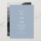 Um design moderno minimalista com sua data especial e detalhes do casamento, em tipografia clássica e chic em um fundo azul empoeirado. Adicione sua foto favorita ao contrário. Projetado por Thisnotme©
