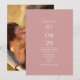 Um design moderno minimalista com a data especial e detalhes do casamento em tipografia clássica e elegante em um fundo rosa poeirento. Adicione sua foto favorita no verso. Criado por Thisisnotme©
