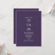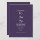 Um design moderno minimalista com sua data especial e detalhes de casamento definidos em tipografia clássica, em fundo roxo. Projetado por Thisnotme©