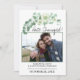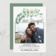 Anuncie uma mudança na sua data de casamento com este cartão com fotos elegante. Apresenta um gráfico de aquarela de verde, eucalipto e flores verdes claras. O design é acentuado com texto de estilo manuscrito.