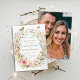 Capturar a magia da sua história de amor com este Casamento de Foto Chic Encantado de Flores Selvagens Salve a Data. Enquadrado por uma delicada camada aquosa de flores silvestres, borboletas, e um coelho doce, esta design exumenta o encanto da floresta. Os florais macios, pintados à mão e os elementos românticos inspirados na natureza criam uma estética sonhadora, perfeita para casamentos florestais boho, rústicos ou encantados. Um modelo de foto personalizável adiciona um toque pessoal, enquanto a tipografia elegante melhora a sensação de chic e eterno. Personalize facilmente com seus detalhes de casamento e deixe que esta design encantadora dê o tom para sua celebração de conto de fadas!