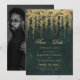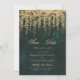 Ilustração de galhos de árvores com vegetação exuberante, selvagem e folhagem pendurada, dispostos digitalmente com ouro, sobre um fundo verde-esmeralda brilhante, decora essa decoração nesta primavera de outono ou casamento no inverno de verão, exceto o convite de data com um tema de floresta encantado. Um elegante e moderno salvará a data para um casamento de conto de fadas. Perfeito para noivas que amam o cenário florestal de conto de fadas, o tema floresta de fadas ou jardim de fadas e o verde esmeralda e o ouro.