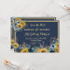Este espantoso Salvem a Data apresenta um fundo azul marinho com girassóis e rodeados por flores azuis mais claras e verde. Douradas letras e toques de caligrafia são um acompanhamento perfeito das belas flores. Uma escolha design para dar o tom para a sua celebração de casamento. Para qualquer pergunta sobre design ou personalização adicional e/ou itens correspondentes, basta enviar um e-mail para charmdesignstudio@rcn.com e teremos todo o prazer em ajudar. Visualize o link de coleção nesta página para ver todos os itens correspondentes nesta bela design.