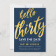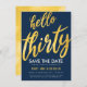 Aniversário de 30 anos do Elegante "Salvar a Data", design de Convite com Tipo Grande (tipografia) em texto Dourado e personalizado. Para obter mais "efeito shimmery", por favor, peça esta design num dos nossos papéis metálicos.