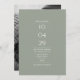 Um design moderno minimalista com sua data especial e detalhes de casamento definidos em tipografia clássica, em verde-sábio. Adicione sua foto favorita ao contrário. Projetado por Thisnotme©