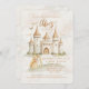Convide seus convidados para uma celebração de conto de fadas com este Convite de Aniversário de 1 ano da Princesa do Castelo Encantado. Com ilustrações em aquarela suave de um castelo mágico, pombas voando e uma adorável princesa com seu amigo unicórnio, este design define o tom perfeito para um primeiro aniversário dos sonhos. Personalizável com o nome da criança, detalhes do evento e informações de RSVP, é ideal para uma festa temática de princesa ou celebração de conto de fadas.