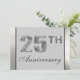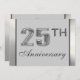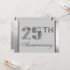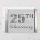 Aqui está um convite elegante com um grande gráfico de prata "25" e um texto de "Aniversário" em roteiro formal na frente. Personalize facilmente o belo texto de script correspondente no verso com nomes, data e outras informações. Excelente Salve os convites de data para o grande aniversário de prata ou 25! Um belo quadro de prata na frente e no verso do convite adiciona a este convite clássico.