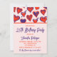 Convites de 25 de aniversário Glam Cute Red Heart