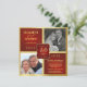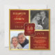 Crie seus próprios convites de festa de aniversário de casamento de 40 anos personalizados, divertidos e elegantes com fotos "então e agora" -- estilo rústico vintage western country em fundo vermelho rubi com detalhes em dourado. Personalize o nome, data e detalhes para seu aniversário de casamento de ouro. **NOTA: Tamanho para cartões de convite QUADRADOS. Outros tamanhos e estilos disponíveis.