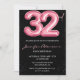 Convites de 32 anos Balão Cor-de-Rosa Glam Preto