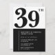Convites de 39 anos Elegante Negro e Branco