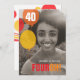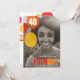 Convites aniversário de 40 anos de dois lados, amarelo-claro, laranja e balão vermelho. Os convites gráficos de balão brilhantes adicionam a sua própria foto de aniversariante ou de menino e personalizam com seus próprios detalhes. Design exclusivo por www.mylittleeden.com no zazzle.