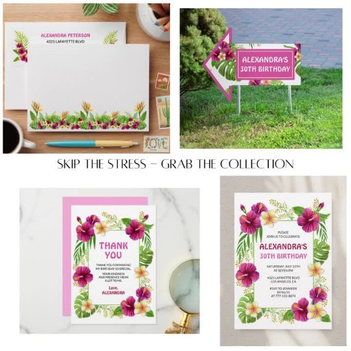 Convites de 67 anos Tropical Floral Rosa