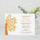 Comece a comemoração do Dia de Ação de Graças com nosso elegante convite de Ação de Graças com uma bela árvore de outono do outono, em verde e laranja. Personalize com você as informações da festa de Ação de Graças e você está pronto para ir!
